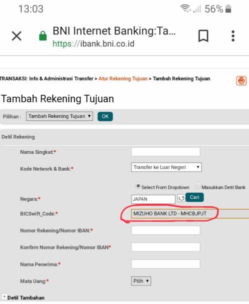 BNI銀行口座開設サポートへの質問